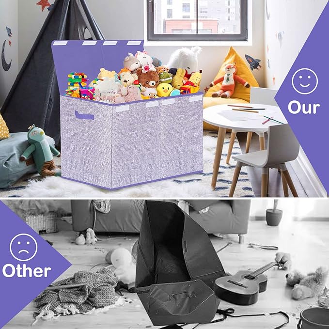 Toy Storage Bins,Large Toy Box Chest with Lids,Foldable Stuffed Animal Toy Organizers and Storage with Sturdy Handles for Kids,Girls,Boys,Nursery,Playroom 24.5"x13"x16" (Purple)