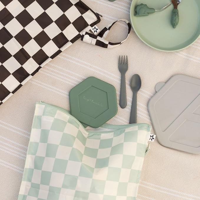 Tiny Twinkle Mess-Proof Waterproof Wet Dry Bag | 2-Pack Reusable Wet Bags for Swimsuits & Baby Clothes | Leakproof Wet Bag for Travel & Diaper Changes for Baby (Black, Green Checkers)