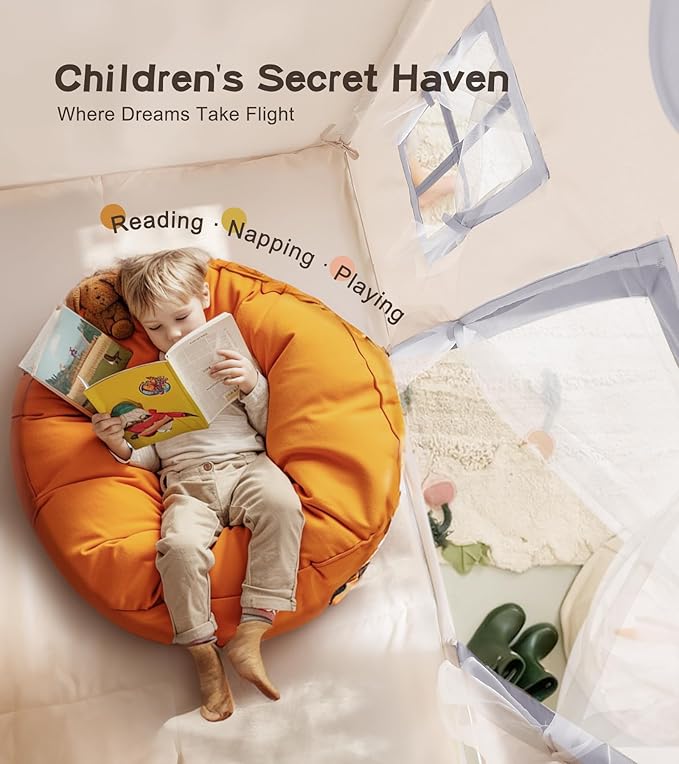 - VERSATILE GIFT: Give your kids an amazing haven with a neutral style that suits any decor. Complete with a door and three curtained windows, this tent for kids is perfect for boys and girls to enjoy imaginative play, reading, games, and adventures. Fuel boundless creativity and transform any space into a realm of wonder.