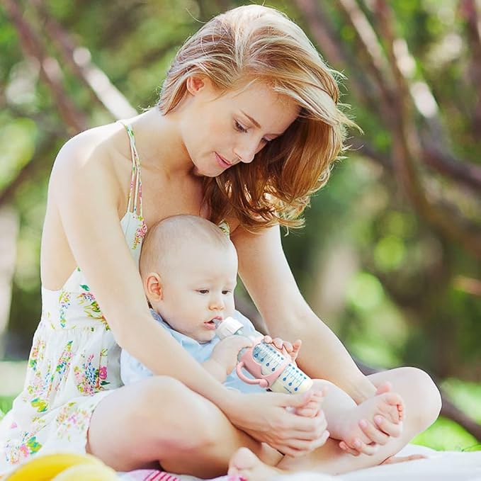 - Easy to Grasp Silicone Handle: The handle of the baby bottle has a thoughtful design in the grip area, which fits the baby's hand as a way to hold it tightly; since the baby's hand is relatively small, it needs a slender and easy-to-grip handle Grip, this handle is worthy of baby's consideration