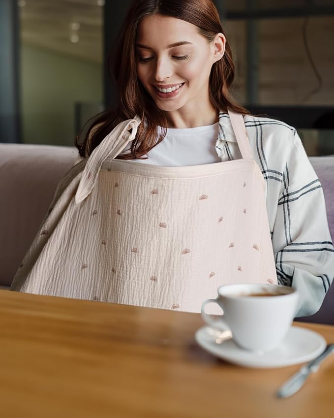 Premium Muslin Cotton: The nursing cover is made of muslin cotton, which is soft, lightweight and breathable. It keeps cool and cozy for both mothers and babies, even in hot summer. Plus, the muslin material stays soft even after washing