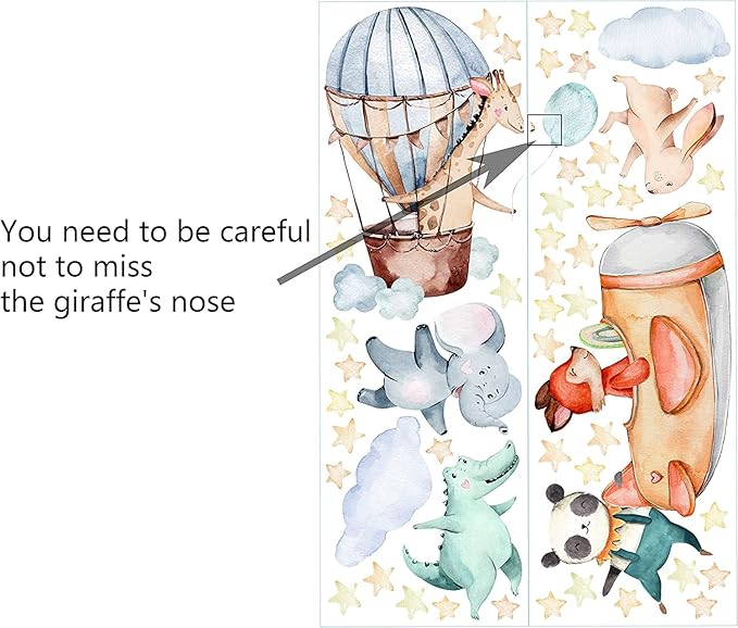 - Lovely Animals Wall Stickers: This watercolor wall decals includes panda, elephants, rabbits, giraffe,fox and hot air balloon , and you can also use your creativity to pose them on the wall, and the room will instantly become cute and interesting!
