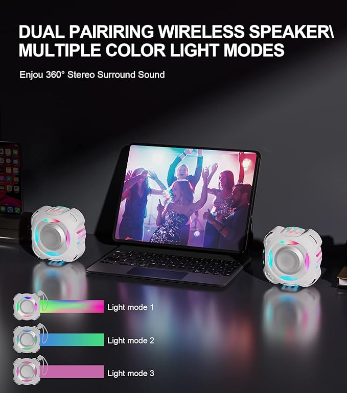 - [Portable, long battery life & TWS-360Β° stereo] Small waterproof speaker with TWS mode, pair 2 speakers together via Bluetooth to create an immersive 360Β° stereo experience, perfectly synchronized to play the same music with double the volume. The portable speaker comes with a flexible lanyard to save space and make it easy to hang the device anywhere. 2000 mAh high-capacity rechargeable battery provides you with about 24 hours of uninterrupted music journey at medium volume.