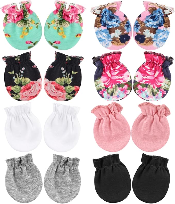 - PACKAGE QUANTITY: You will get 8 pairs of newborn baby mittens in different colors, which are easy to match and offer enough quantity for daily replacement and daily wear, you can also share the cotton mittens with the babies of your friends and family.
