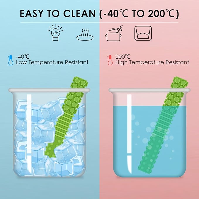 - EASY TO CLEAN: very easy to clean, just wash the sensory chewing toys with soapy water, or wash it with dishwasher. Our teethers for babies can be sterilized by boiling water, steam sterilizer and sunlight. -40℃ to 200℃ Temperature resistant, we suggest cleaning it before first use and after each use