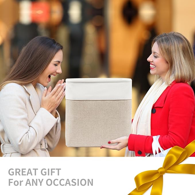 Collapsible Fabric Storage Cubes 11x11 Cube Storage Bins, 4 Pack Closet Baskets Box with Handles for Organizing, Shelf, Toys, Clothes, Home, Office, Nursery (Beige&White)