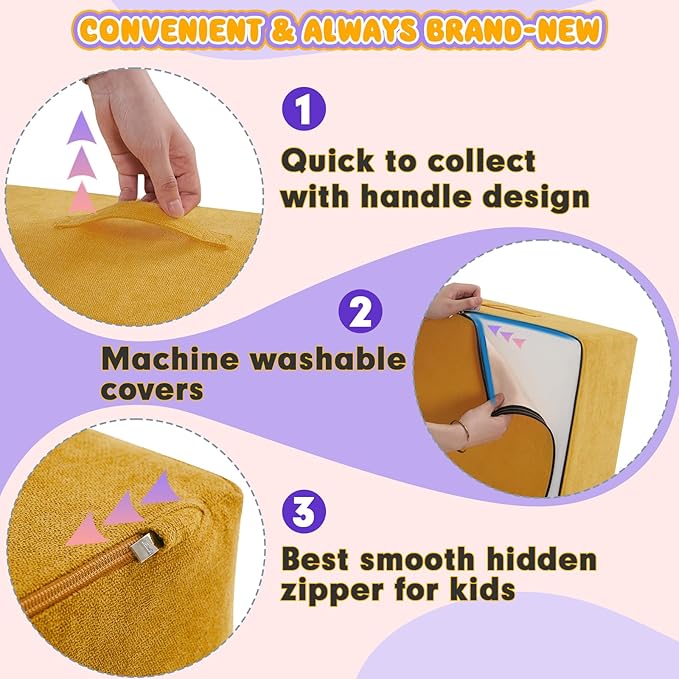 • 【EASY TO SETUP&COLLECT】: The foam climbing blocks set is easy to detach with smooth zippers, hidden zippers and handles to carry considerately designed for kids. machine washable covers, you can wash them anytime for brand-new look. Your babies will absolutely love this soft play equipment! Should you have any query please feel free to contact us , we will reply immediately.