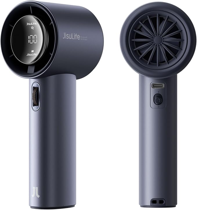 JISULIFE Portable Handheld Fan,Speed(1-100) Adjustable Turbo Mini and 3600mAh Battery Rechargeable Personal Fan,Digital Display,Gifts for Women Men Travel/Camping/Outdoor-Blue