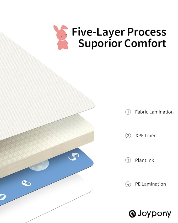- [DOUBLE SIDE CLOTH & XPE] - When it comes to your baby's playtime, versatility is key. That's why Joypony baby play Mmat features two different surface materials: a plush cloth side for cozy comfort and a durable PE side for easy cleaning and long-lasting use. Switch between these surfaces to suit your baby's needs.