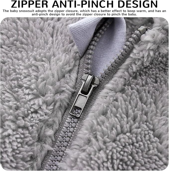 - ❤♥Design: Baby fleece snowsuit jacket warm one-piece jacket, full-cover zipper design to protect the baby from harm, one pull to the end, it is convenient for the baby to change diapers, the flip-up gloves can keep the baby warm and energetic at the same time, the bear ear one-piece cap makes the baby Avoid cold winds outdoors while increasing your baby's charm.