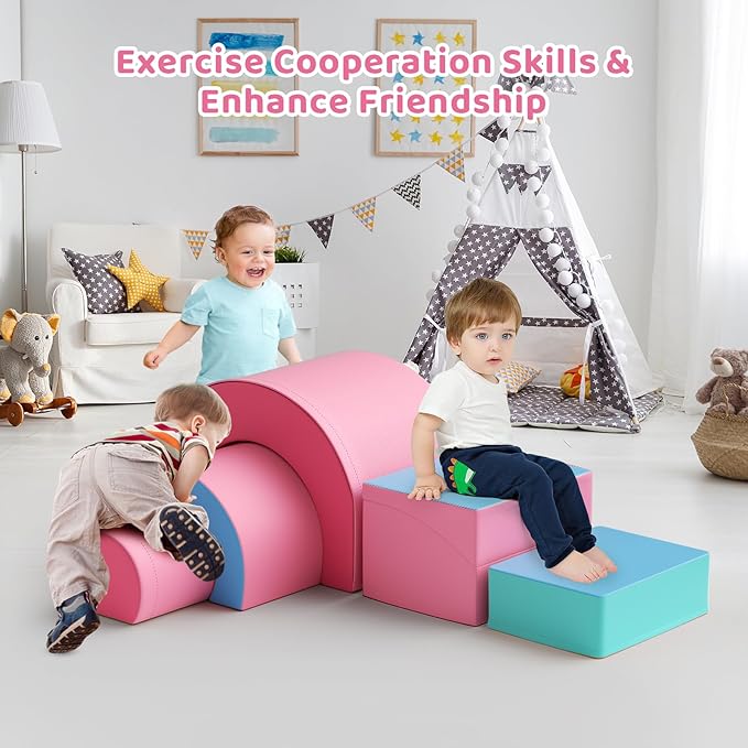 - 🎀 "DIY Crawl And Climb Playset" The foam climbing blocks playset come with 5 different shaped blocks, so toddlers can create their own crawling paths. We believe it can develop children's creativity and problem-solving skills. At the same time, it can bring an interesting and challenging game experience to children.
