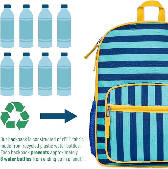 Wildkin ECO rPET Kids Backpack – Recycled, Padded, Adjustable for School & Travel – Blue Stripes