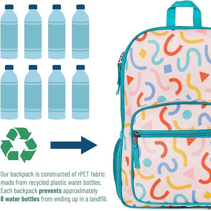 Wildkin ECO rPET Kids Backpack – Recycled, Padded, Adjustable for School & Travel – Confetti Peach