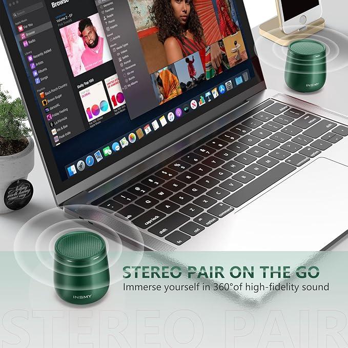 INSMY Small Bluetooth Speaker, Waterproof Mini Portable Wireless Speaker, Punchy Bass Rich Audio Stereo Pairing, Handheld Pocket Size for Hiking Biking Gift Laptop Tablet (Green)
