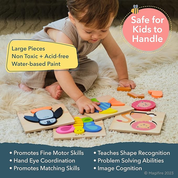 Inspire Curiosity And Learning: Wood puzzles for toddlers 1-3 inspire curiosity and hands-on learning. They build problem-solving skills and cognitive growth through fun, educational play