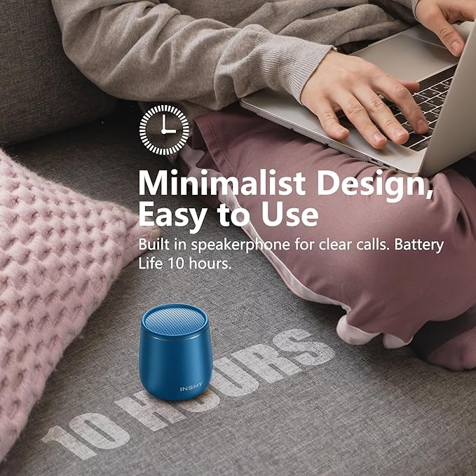 INSMY Small Bluetooth Speaker, Waterproof Mini Portable Wireless Speaker, Punchy Bass Rich Audio Stereo Pairing, Handheld Pocket Size, Built in Mic for Hiking Gift Laptop Tablet (Blue)