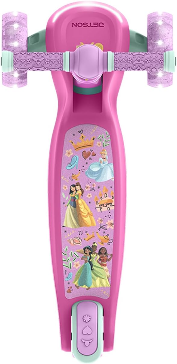 - Glitter and glow: Glittery, light-up wheels and a frame that sparkles with multicolor LED lights make this scooter show-off worthy.