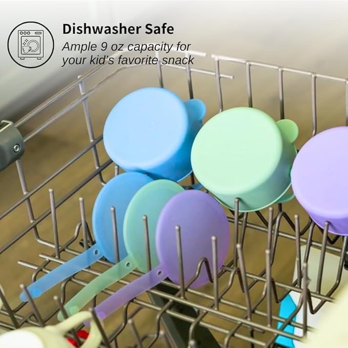 - Cups Built to Brave Toddlerhood: Crafted from BPA-free, food-grade silicone, our no spill cups for toddlers serve up peace of mind with every bite and clean up in the dishwasher easily; Plus, they come bundled in twos, each sporting a different hue