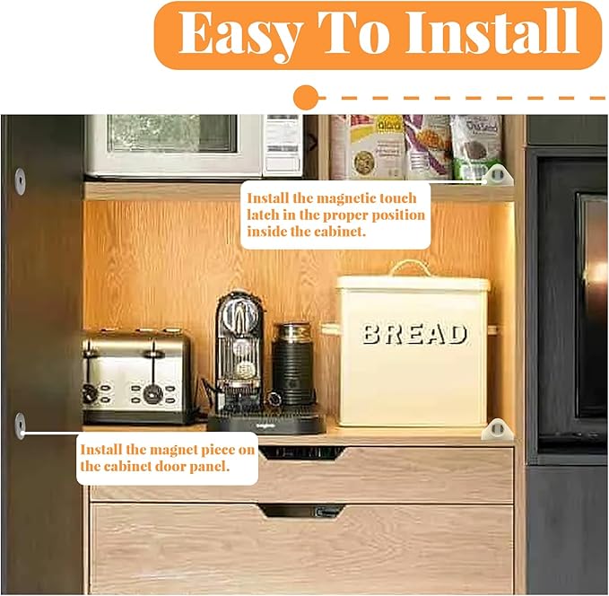 Durable Material: The shell of the magnetic touch latch is made of ABS material, strong and stable, wear-resistant and durable. High quality magnets and iron sheets provide strong suction and prevent them from falling off easily.