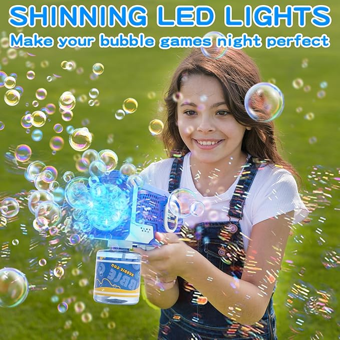 EagleStone 2 Bubble Guns Machine for Kids,8 Hole Light Up Bubble Maker with 4 Refill Solution and 10 Bubble Concentrate for Toddlers,Party Favors Birthday Fun Gifts for Girl Boy Outdoor Toy
