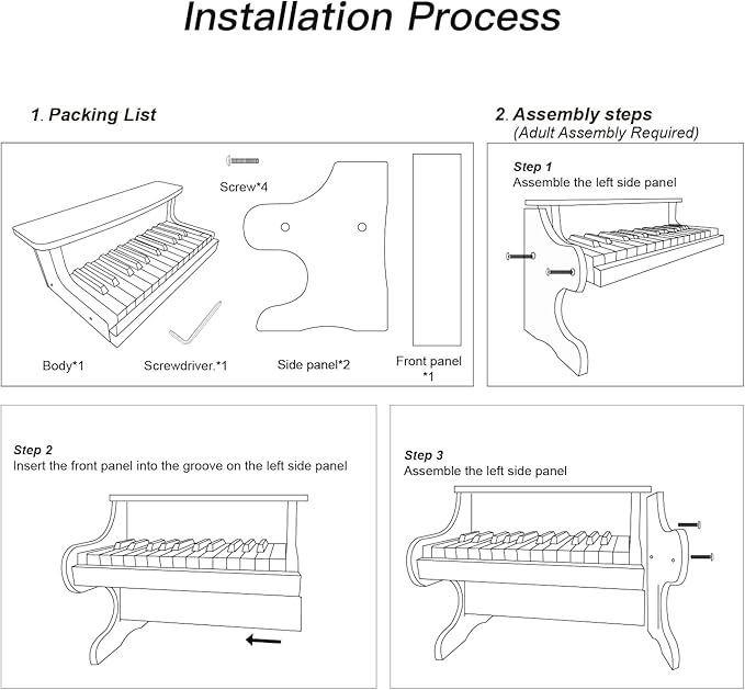 High Standard:The piano keyboard has been certified by TUV and meets the standard of ASTM F963. All materials are non-toxic and odorless, allowing children to use them with peace of mind. Natural walnut color appearance, like a piece of art. (Adult assembly required.)