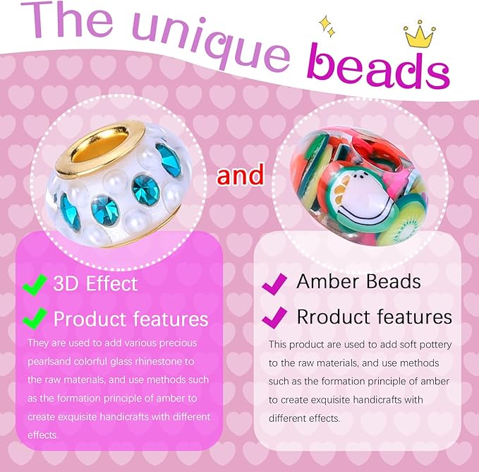 - Colorful life: With this beautiful magic princess gift box, 13 Different styles colors of large holes beads in European style make your life colorful, and the magic rainbow will always accompany you.