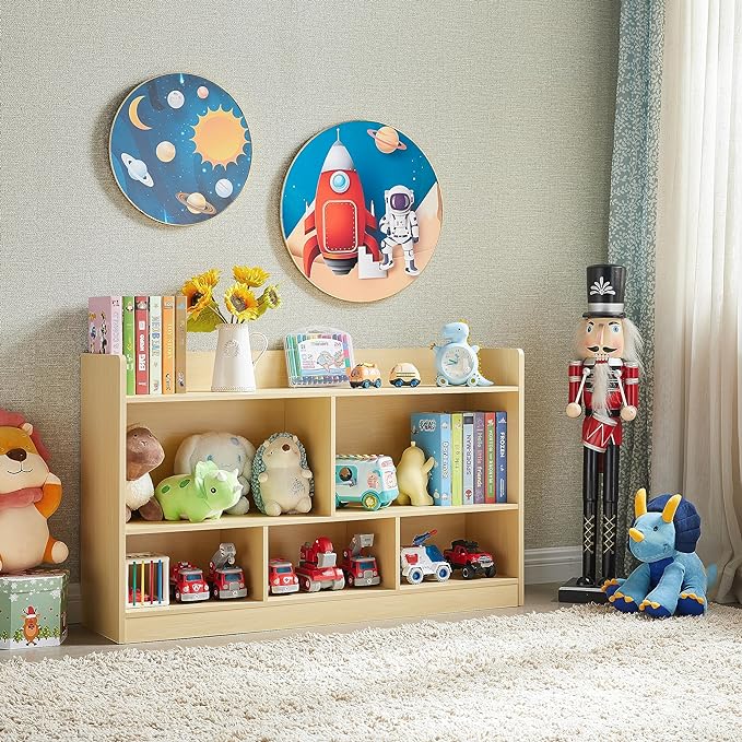 Kids Toy Storage Organizer, 5-Section Bookshelf for Organizing Books Toys, Wooden Storage Cabinet Daycare Furniture for School, Classroom Playroom, Nursery, Kindergarten (Natural)