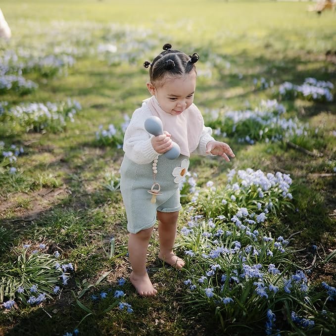 Baby Sensory Essential: Make playtime more engaging with our Silicone Baby Rattle that offers a gentle sensory experience for little ones. Perfectly sized for tiny hands, babies will benefit from its easy-to-hold design as they explore the world around them.