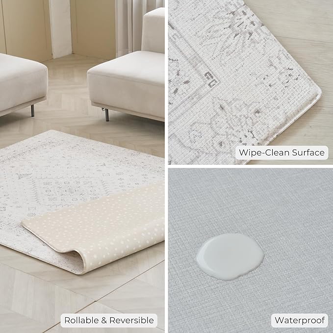 WATERPROOF & REVERSIBLE - easy to clean with baby wipes. Two-sided for learning and interior