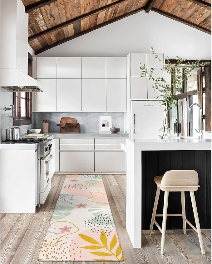 Lahome Pink Runner Rug - 2x7 Runner Rug Non-Slip Washable Bathroom Rug Runner Throw Lightweight Floor Runners for Hallway Non Skid, Botanical Print Carpet Runner for Kitchen Bedroom Laundry Room