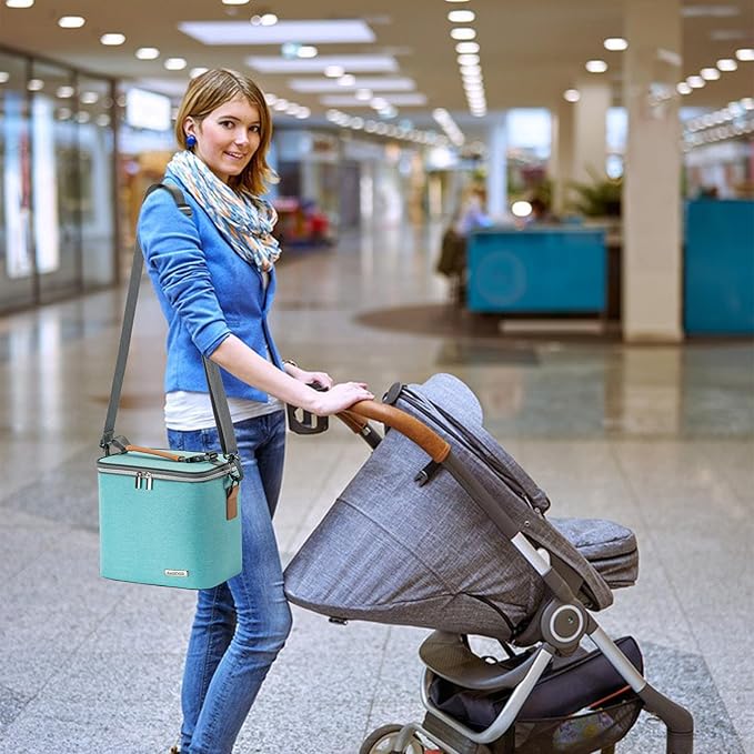 - More Practical: Breastmilk cooler bag have detachable buckle top handle that you can put it in the stroller easily. Come with an adjustable shoulder straps ( 28 - 57 inches) makes the baby cooler bag easier to carry. Except for storing breastmilk, baby cooler bag can as a lunch bag to store refrigerate fruits, lunch or other foods