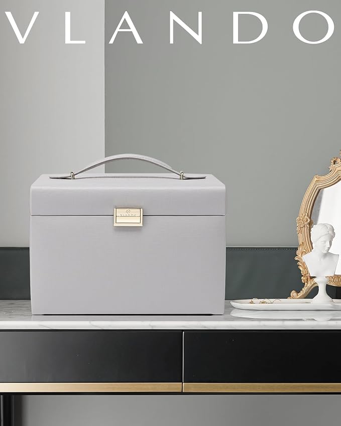 - Crafted with High-Quality Materials - Vlando luxurious synthetic leather jewelry box is resistant to moisture and scratches. The sleek exterior and premium velvet interior lining make it a stunning addition to any room