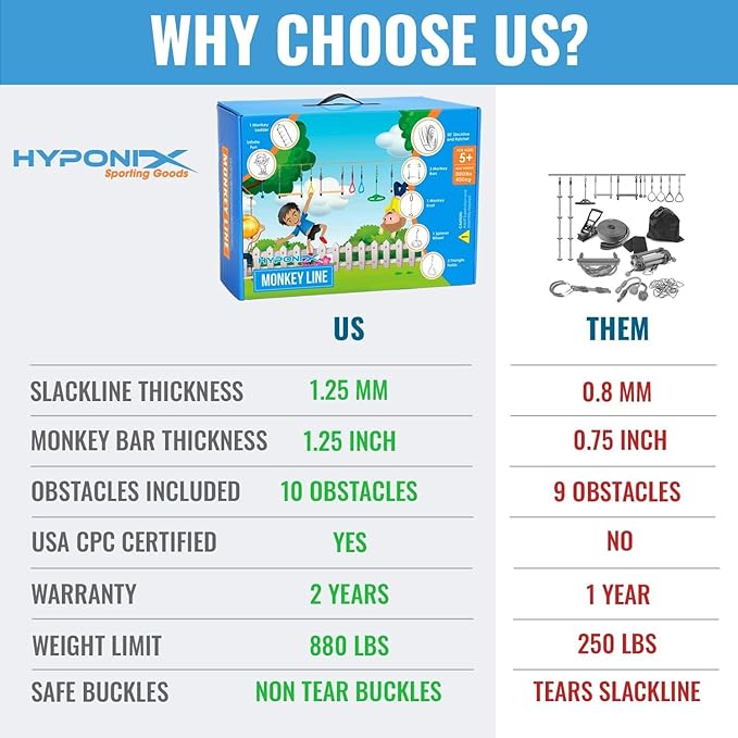 - COMPLETE NINJA OBSTACLE COURSE FOR KIDS – A full set of ninja warrior training equipment featuring 2 x 50 ft slacklines and 10 weatherproof obstacles designed to promote climbing, swinging, and balance skills for ninja kids who love outdoor toys and active play.