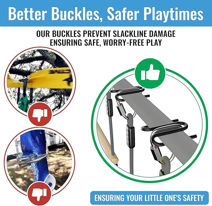 - ENDLESS CONFIGURATIONS, EASY SETUP – Each obstacle (including monkey bars and climbing ropes) secures with steel carabiners for quick adjustments based on skill level. Use our Ratchet-Tight Technology to set up your ninja warrior training equipment for kids in minutes between two anchor points.