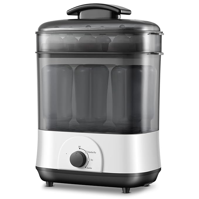 Baby Bottle Steamer, 3-in-1 Bottle Steamer and Dryer, Easy One-Dial Control Electric Steam Bottle Dryer for Baby Bottles, Baby Stuffs & Breast Pump Accessories