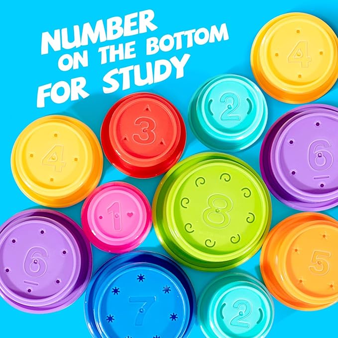 Come with 12 pcs no hole bath toys, 8 pcs baby stacking cups