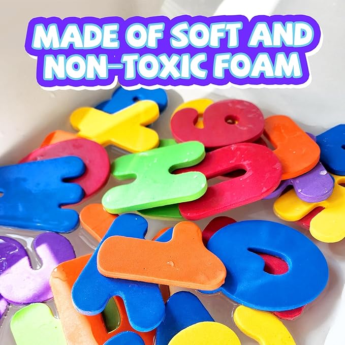 Come with 12 pcs no hole bath toys, 36 pcs bath letters and numbers for toddlers