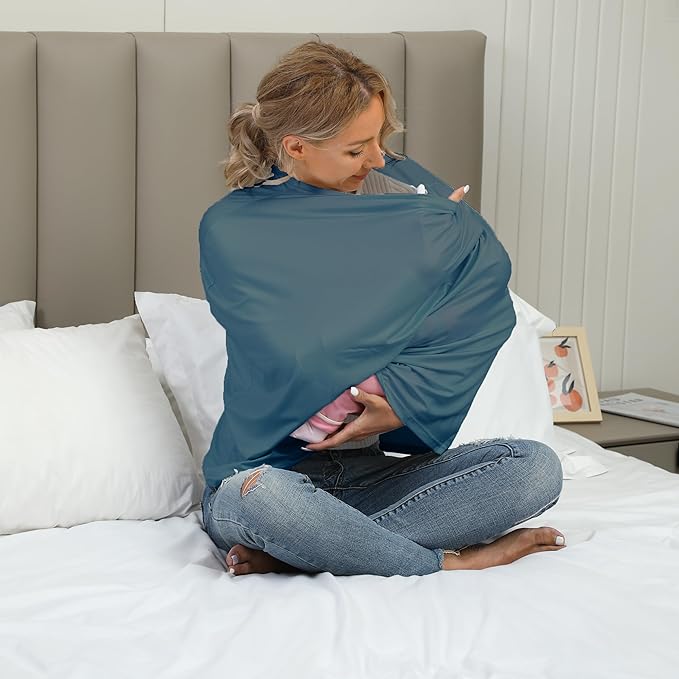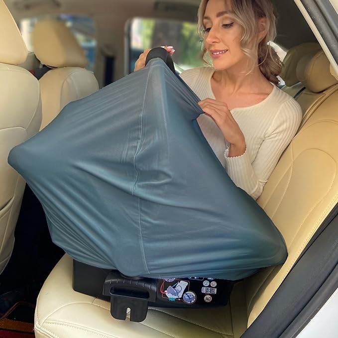 Breathable Car Seat Cover for Babies – Multi-Purpose Soft Rayon Nursing Cover for Breastfeeding, High Stretchy Infant Carseat Canopy, Stroller Cover (Smooth Rayon, Blue)