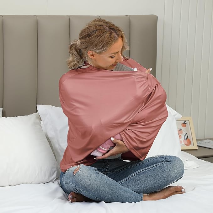 Breathable Car Seat Cover for Babies – Multi-Purpose Soft Rayon Nursing Cover for Breastfeeding, High Stretchy Infant Carseat Canopy, Stroller Cover (Smooth Rayon, Blush)