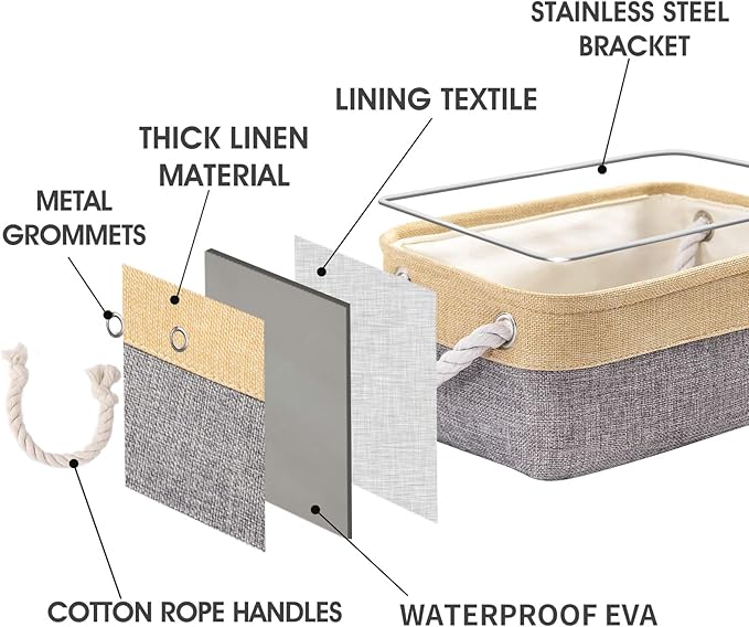 - No chemical smell: These Organization and Storage are mainly made of natural linen, thick EVA and lining canvas.Stick together using the latest technology, no glue, sturdy and durable, with only a faint linen smell.Baskets gift for empty are wonderful choices.