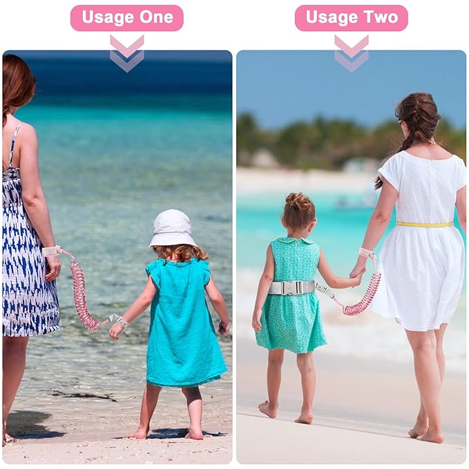 - 2 Different Usage: ①Children wearing as a belt with anti lost wrist link; ② Using the anti lost wrist link both on parent’s and kid’s hands. 2 different usages can meet your various DIY combination needs, Not only let kids walk freely, but also free your hands and arms.