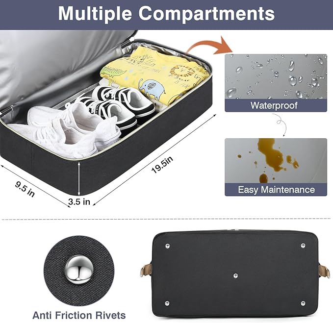 - [Dry Wet Seperated Compartment] The compartment of this travel diaper bag is fashioned with PVC waterproof materials.This compartment can also be used to hold dirty clothes, shoes or wet towels, separating wet and dry to prevent your clean luggage from getting soiled or wet. Compartment size: 19.5*9.5*3.5in. Also studded 4 round metal feet in the bottom to keep the baby diaper bag clean and off the ground.