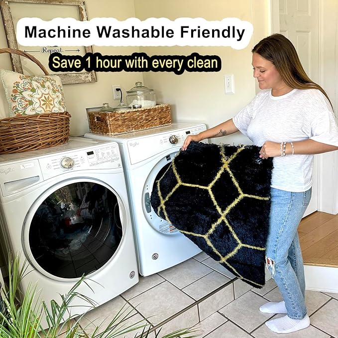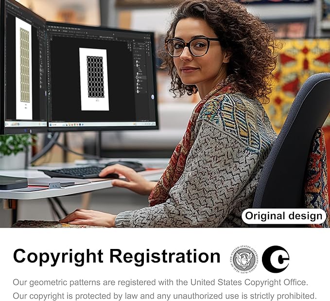 - [ Upgraded Machine Washable ]: For daily cleaning, please try to clean the rug with a vacuum or shake cleaning, dust and debris on the surface can be removed easily. For deeper cleaning, machine wash separately on cold with mild detergent then line dry. You can effortlessly keep your rug looking fresh and pristine, saving you time and effort on maintenance. We own the copyright to this geometric pattern.
