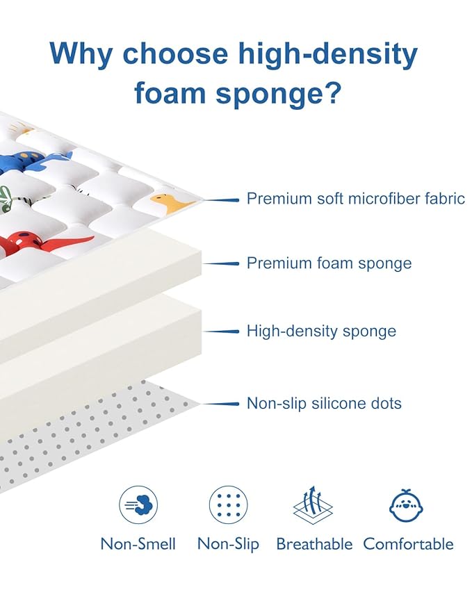 - Focus on Details: Backed by 25 years of manufacturing expertise: Our mat for babies features reinforced precision stitching and 40X longer lifespan than average nursery mats. Built to withstand daily adventures!