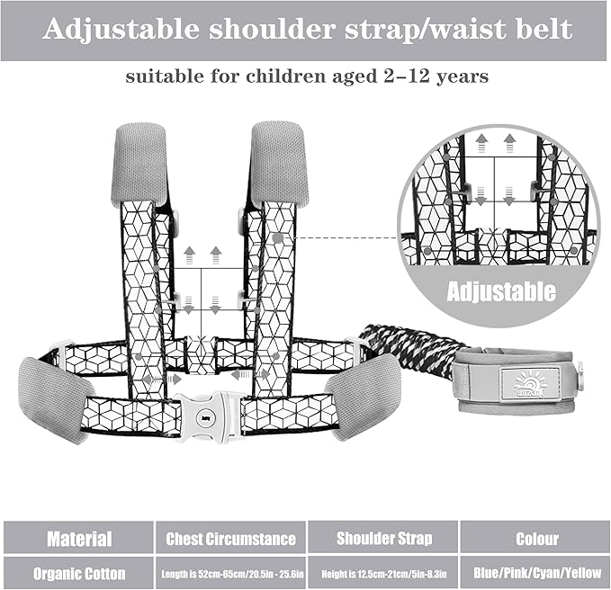• Peace Of Mind:The child safety wristband will give you peace of mind by keeping toddlers close while still allowing them a bit of independence. The shrinking chain can extend up to 2m/6.5ft, Children's locks can prevent some troubles caused by children's self-opening in crowds,using this safety harness leash, no more worrying about your child running off.