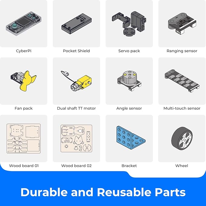 - Unleash Limitless Possibilities with CyberPi: In addition to the incredible STEM projects, CyberPi offers a vast array of functions to explore. Take control with the Joystick, detect motion, illuminate with vibrant LED lights, enjoy a full-color display, record precious moments, and play captivating sounds. Let your creativity run wild!