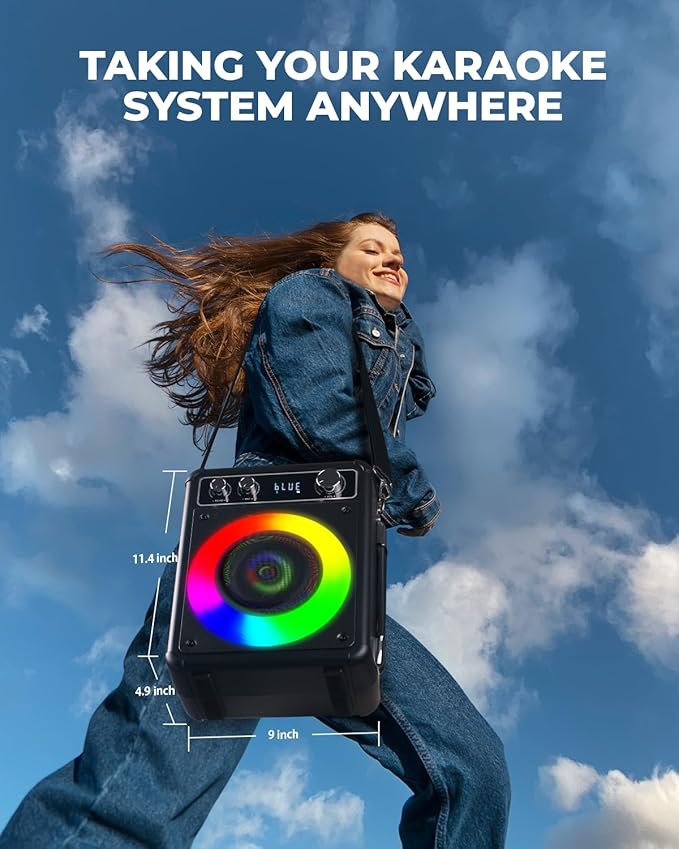 - Fascinating LED Light Show: Transform any room into a concert hall with built-in LED light show. Karaoke machine for adults creates a vibrant atmosphere with LED light effects that move in time to the beat of the songs. Gather your guests and take your karaoke night to the next level with this captivating visual experience.