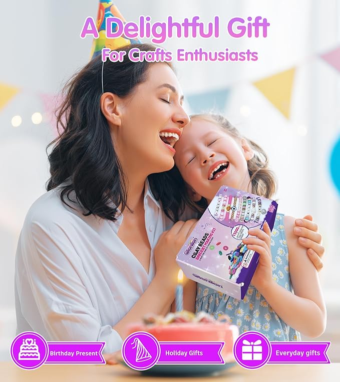 - 【 Ideal Gift Choice】 A bracelet or crafts maker is a space to relax, a sweet idea to savor the precious moment with your loved ones and a nice way to bond with your besties. This clay bead bracelet making kit also will be a meaningful gift for your daughter, granddaughter, sister, besties and teen girls. A meaningful and cheerful gift choice for birthdays, Valentine's Day, Mother's Day, Christmas, Thanksgiving Day, etc.