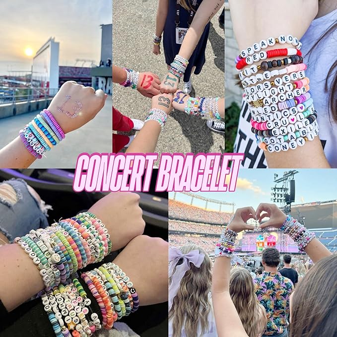 - 【Friendship Bracelet kit】Besides polymer clay beads, 780pcs A-Z letter beads,90pcs number beads are also in this clay beads bracelet kit, Spelled-out album titles,names, words, lyrics or phrases on the friendship bracelets and take to the TS concert or movies to take the moment.