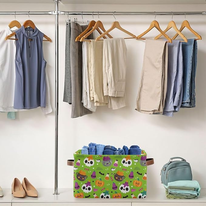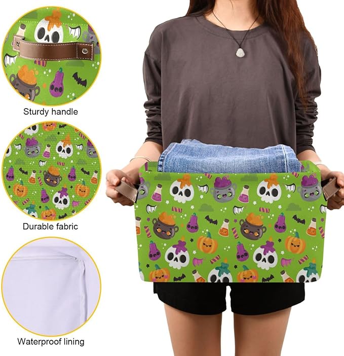 Storage Basket Bin Halloween Horror Pumpkin Organizer Basket Collapsible Shelf Basket Cube with handle for Nursery Bedroom Bathroom